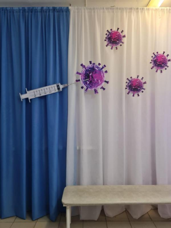 Необычная фотозона появилась при входе в прививочный кабинет. А создали такую красоту сотрудники Центральной городской детской библиотеки.