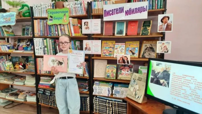 29-ое марта в городской библиотеке – филиале № 8 было посвящено творчеству С. В. Михалкова. Ребята, посещающие площадку СОШ № 2 и СОШ № 18, стали участниками литературного турнира «Всем советы дать готов Сергей Владимирович Михалков!». После небольшого знакомства с биографией поэта с помощью электронной презентации дети вспоминали названия стихов, вставляли пропущенные слова, разгадывали загадки и завершали неоконченные строчки. Также были показаны отрывки из мультфильмов, проводилась физминутка под «Песенку друзей». Ребята прочитали по ролям стихотворение «Лапуся» и показали героев еще нескольких стихотворений Михалкова. Завершилось мероприятие вручением грамоты за 2 место в конкурсе рисунков «А что у вас?» Софье Шевелевой. Ранее грамоты за победу в конкурсе были вручены Филимоновой Есении, Сергеевой Полине и Гебедовой Бике. Еще раз поздравляем победителей!