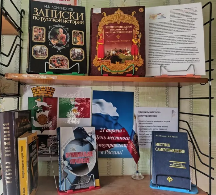 К этому событию в центре общественного доступа Центральной городской городской библиотеки оформлена тематическая выставка "21 апреля - День местного самоуправления" . Представленная на выставке литература знакомит читателей с историей развития местного самоуправления.