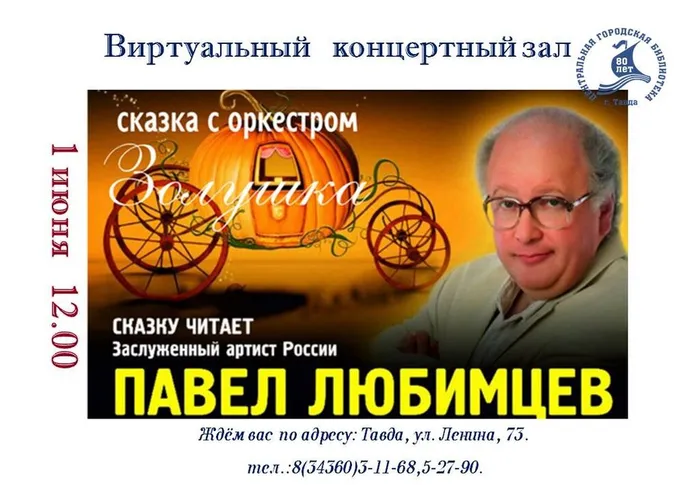 «Золушка» — всеми любимая с детства сказка, которую наши читатели знают в пересказе французского поэта и писателя XVII века Шарля Перро. Волшебная история о красивой, доброй и скромной девушке, вынужденной волею судьбы прислуживать злой мачехе и ее дочерям, терпеливо сносить их капризы и грубый тон, получила свое художественное воплощение во многих известных произведениях искусства, в том числе в театре и кинематографе. Известный актер и телеведущий Павел Любимцев представит для вас сказку «Золушка» по сюжетам Шарля Перо и Евгения Шварца. Вы услышите не только сказку, но и окунётесь в волшебный мир музыки. Сказка о Золушке прозвучит в пространстве прекрасной музыки В. А. Моцарта и П. И. Чайковского в исполнении Уральского молодёжного симфонического оркестра /дирижёр маэстро Энхе.