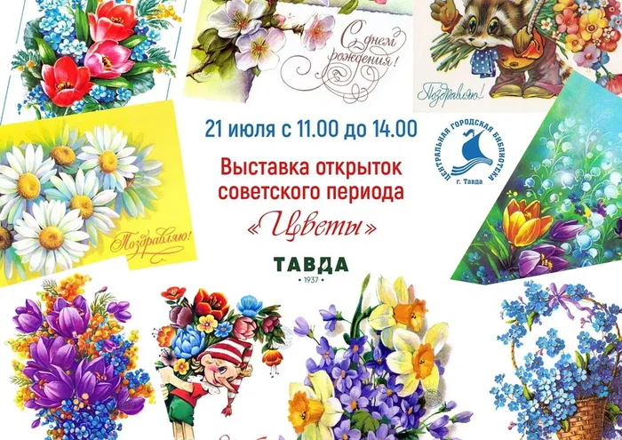 21 июля, в День рождения любимого города, приглашаем посетить уникальную ретро-выставку открыток советского периода «Цветы».