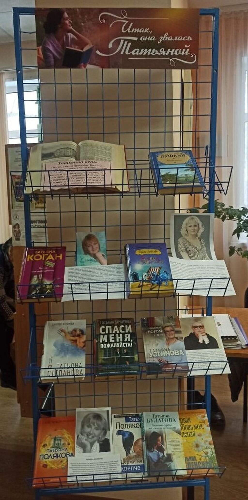 В Центральной городской библиотеке этому событию посвящена книжная выставка "Итак, она звалась Татьяной". На выставке представлены книги авторов с нежным и красивым именем Татьяна: Устиновой, Поляковой, Веденской, Коган, Булатовой Степановой… Жанр произведений у них очень разный: детективы, романтические повести, рассказы, жизнеутверждающие истории о быте и семье. У каждого из них свой читатель.